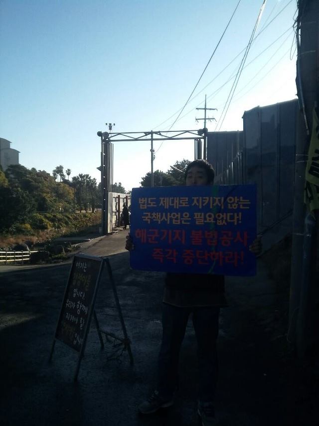 '강정지킴이 **의 불법공사 해군기지 중단요구 피켓팅 6일차. 일요일은 쉽니다. 손흔들어주시는분. 캔커피주시는분들 계신다고 합니다. 함께해요 (글, 사진, 김**)