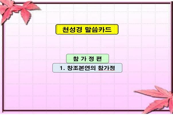 참가정편 - 1. 창조본연의 참가정 작성자유지혁|작성시간21.11.29|조회수32 목록 댓글 0 글자크기 작게가 글자크기 크게가 다음검색 현재 게시글 추가 기능 열기 북마크 공유하기 신고 센터로 신고 댓글 댓글 0 댓글쓰기 답글쓰기 댓글 리스트