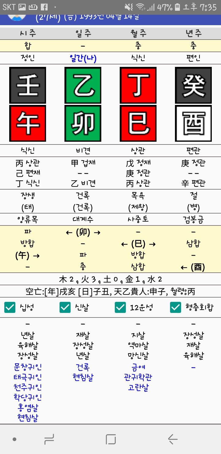 제게 해당되는도화랑 세기 좀 알려주세요! 작성자jhmin603|작성시간19.02.25|조회수901 목록 댓글 1 글자크기 작게가 글자크기 크게가 제사주인데요 시지도화는 이해했는데 일주에 도화가 하나 더 있는데 이해가 안되서.. 제게 해당되는 도화살 모두 알려주시면 감사하겠습니다. 세기는 얼마나 되나요?? 다음검색 현재 게시글 추가 기능 열기 북마크 공유하기 신고 센터로 신고 댓글 댓글 1 댓글쓰기 답글쓰기 댓글 리스트 작성자계피 | 작성시간 20.12.18 기본적으로 도화는 년지 일지기준으로 보는데 년지가 유금이고 시지가 오화라서 년지기준 오도화이고 일주자체로 을묘라서 간여지동 비견도화이며 정화 투출해서 쌔기는 중간정도보다 조금 위로 될것같아요 그렇다고 엄청나게 쌔진않아요 댓글 전체보기