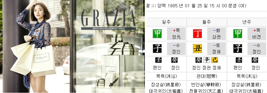 나체도화[일주 갑자 나체도화 + 년주 양일간 십이운성 목욕지지 정도화살]