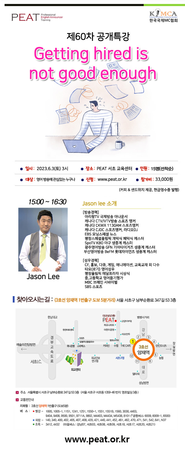 PEAT 60차 공개특강- "Getting hired is not good enough" 6/3(토)오후3시