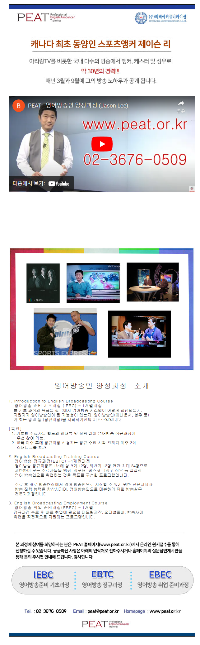 자세한 내용은 PEAT-영어MC/아나운서양성과정 에서 확인 하실 수 있습니다.