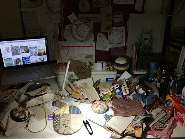 아래 사진의 작품은 제가 좋아하는 문구와 퀼팅이 더해져서 지금 저의 티포트 받침으로 쓰이고 있습니다.