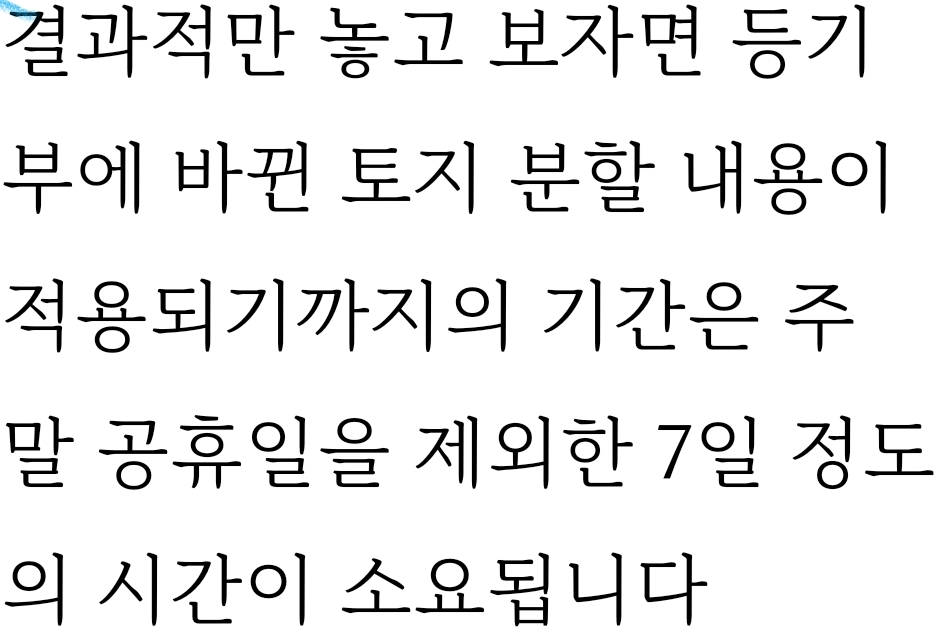 분빌신청을 하고 15일 이내에 지적정리까지 완결된다.