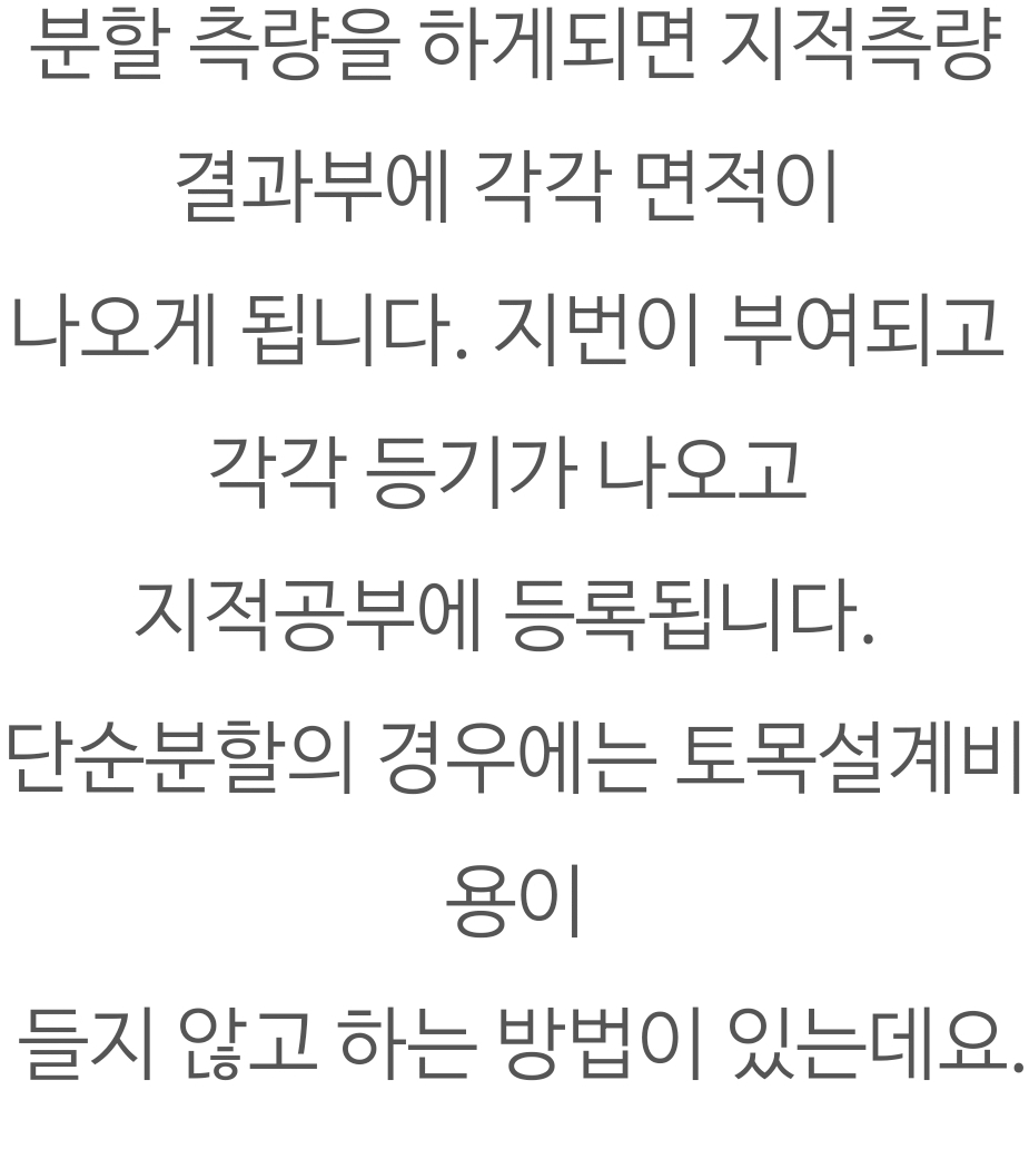 다만 토지 분할에 전문성이 요하거나 복잡한 분할일 경우는 설계사에 의뢰하여 처리하는 게 좋겠고요^^