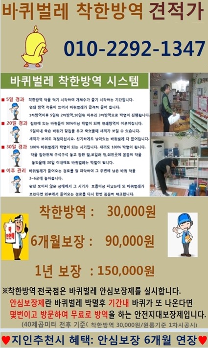 알뜰히 절약하시고 바퀴벌레는 저렴하게 착한방역을 이용하시길