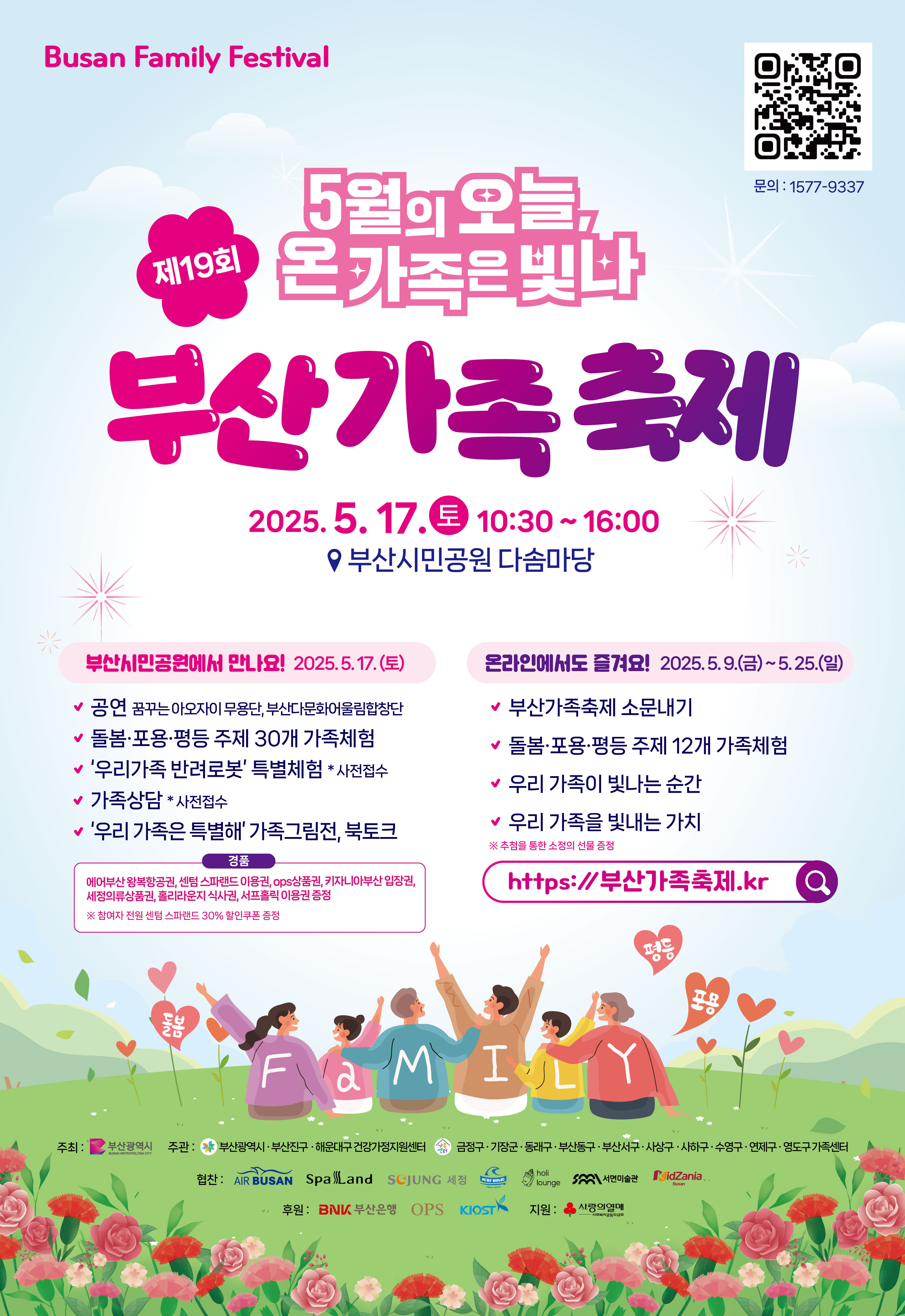 제19회 부산가족축제 개최 안내-5월의 오늘, 온 가족은 빛나 작성자교육원감 김임영^^|작성시간25.05.12|조회수199 목록 댓글 0 글자크기 작게가 글자크기 크게가 2025. 5. 17.(토) 10:30~16:00 부산시민공원 다솜마당에서 부산가족축제가 개최됩니다.관심있으신 가족들은 방문하여 다양한 체험활동에 참여해보면 좋을 것 같습니다. 다음검색 현재 게시글 추가 기능 열기 북마크 공유하기 신고 센터로 신고 댓글 댓글 0 댓글쓰기 답글쓰기 댓글 리스트