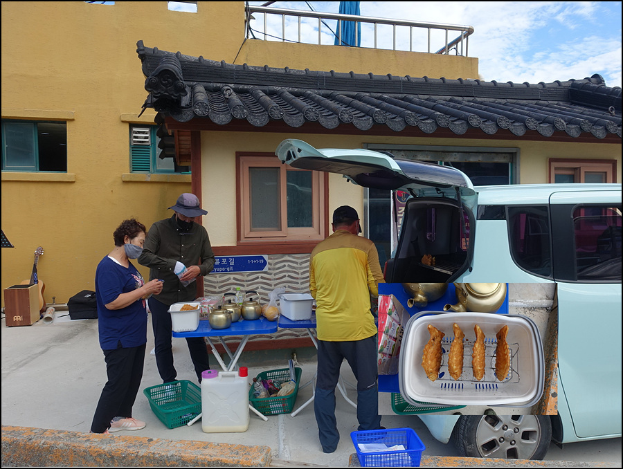 항구 옆에 있는 편의점 쉼터에서 동지들을 만났다