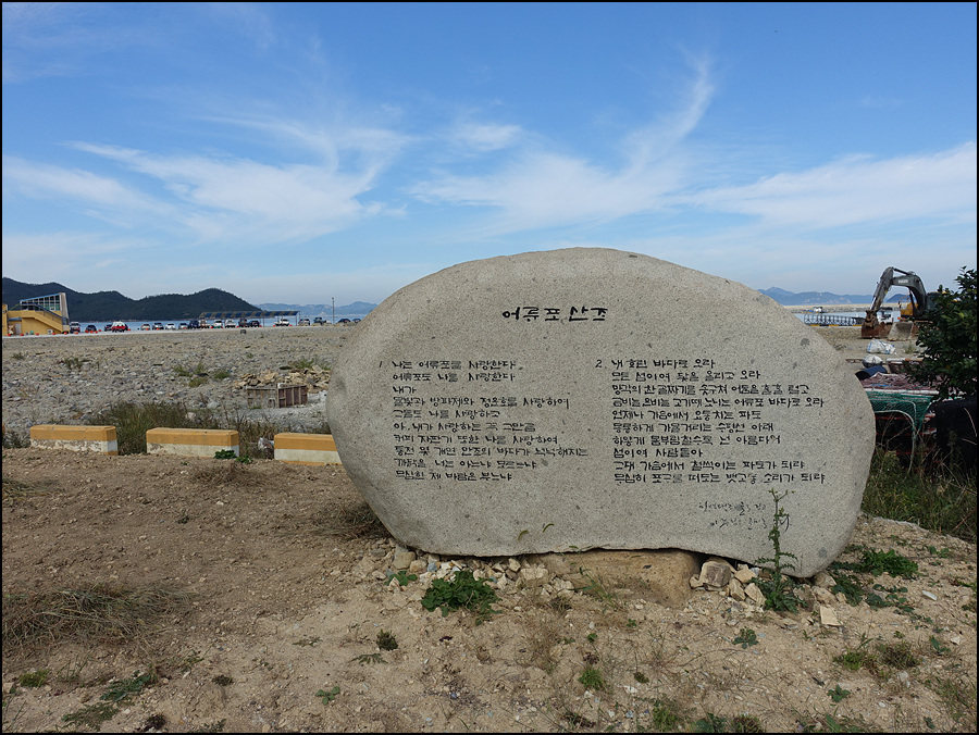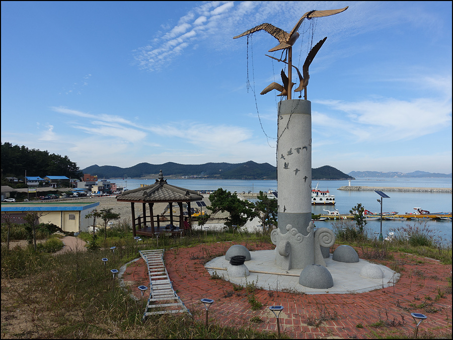 어유포항 위의 언덕에 독수리상이 서 있었다