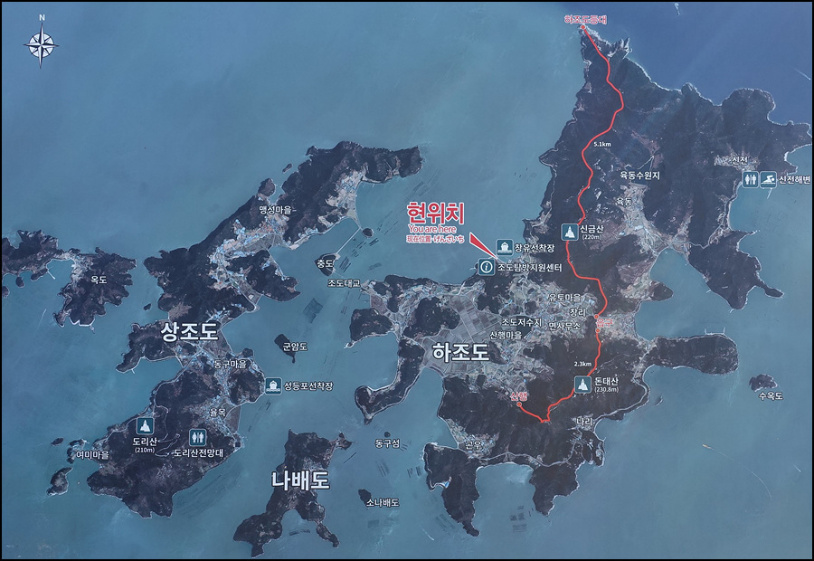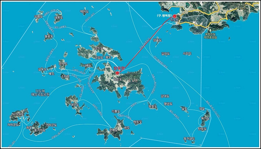 서해와 남해를 연결하는 해상교통의 요충지 장죽수도가 한눈에 들어온다.