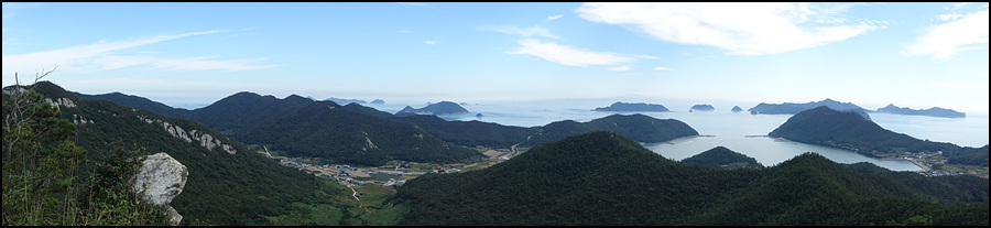 마치 새떼처럼 흩어져 있는 섬들과 푸른 바다가 한눈에 들어왔다.