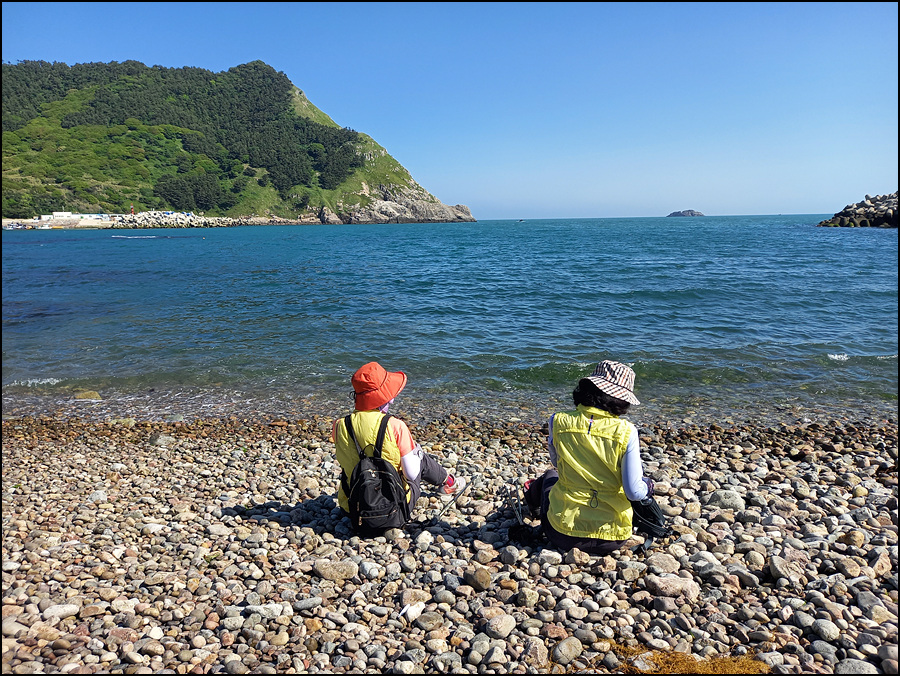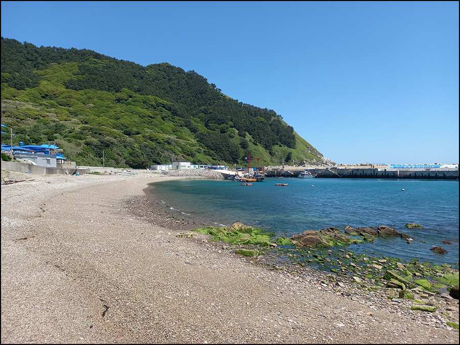 몽돌해안이 반원형을 만들고 있는 건너짝지는 앞짝지의 축소판이다.