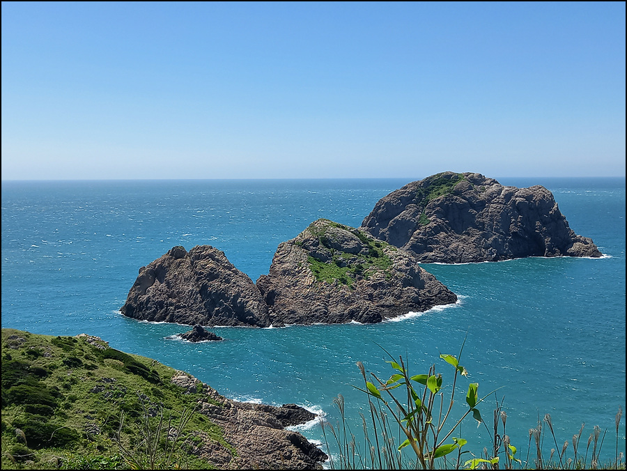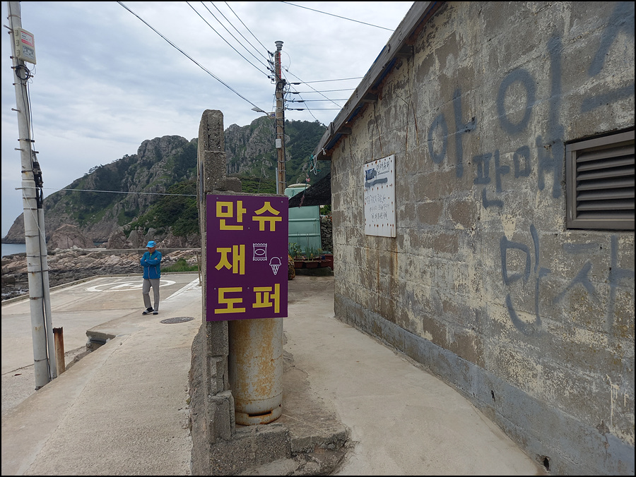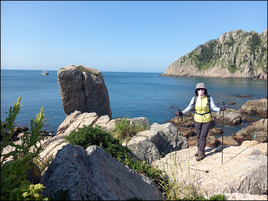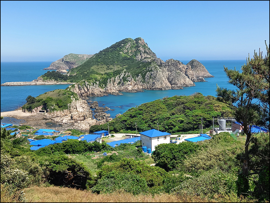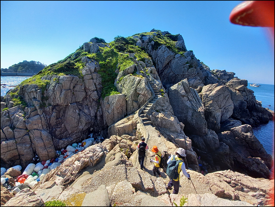 그 낭떠러지 뒤로는 바위섬(내마도, 외마도)이 있다.