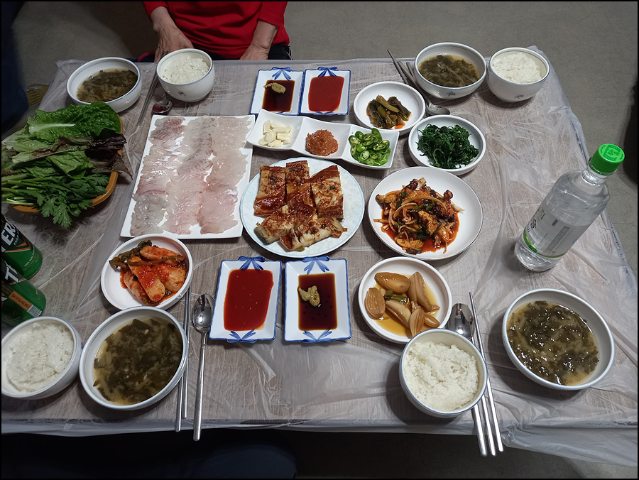 적당히 숙성된 생선회와 맛깔스런 반찬이 끝내주었다.