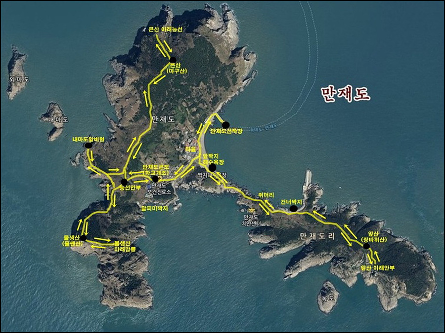 코끼리를 닮은 내마, 외마 두 개의 섬이 나란히 붙어 있다.