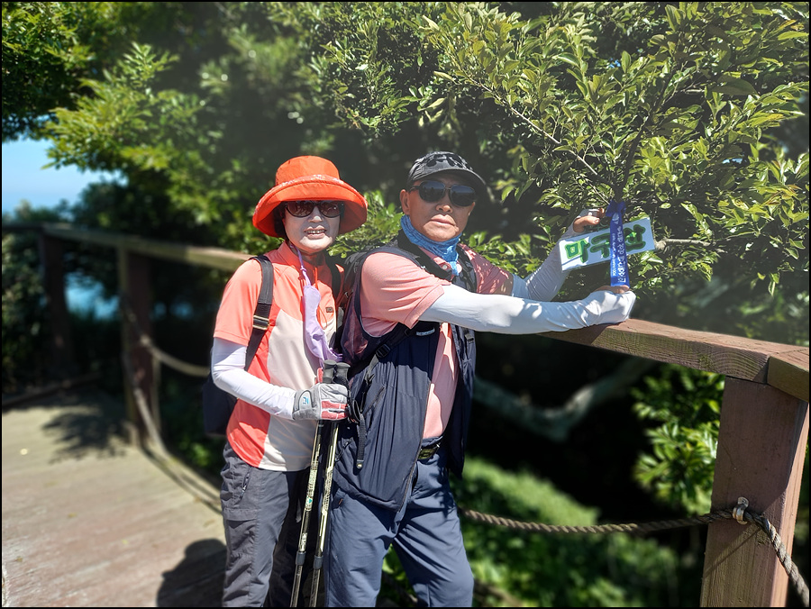 집에서 만들어온 정상 표지판을 매달아 놓고 인증샷~~