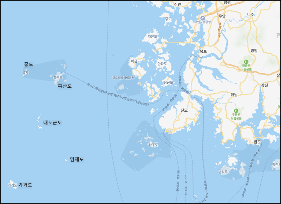 목포에서 쾌속선으로 5시간 40분 정도 걸려야 갈 수 있었다.