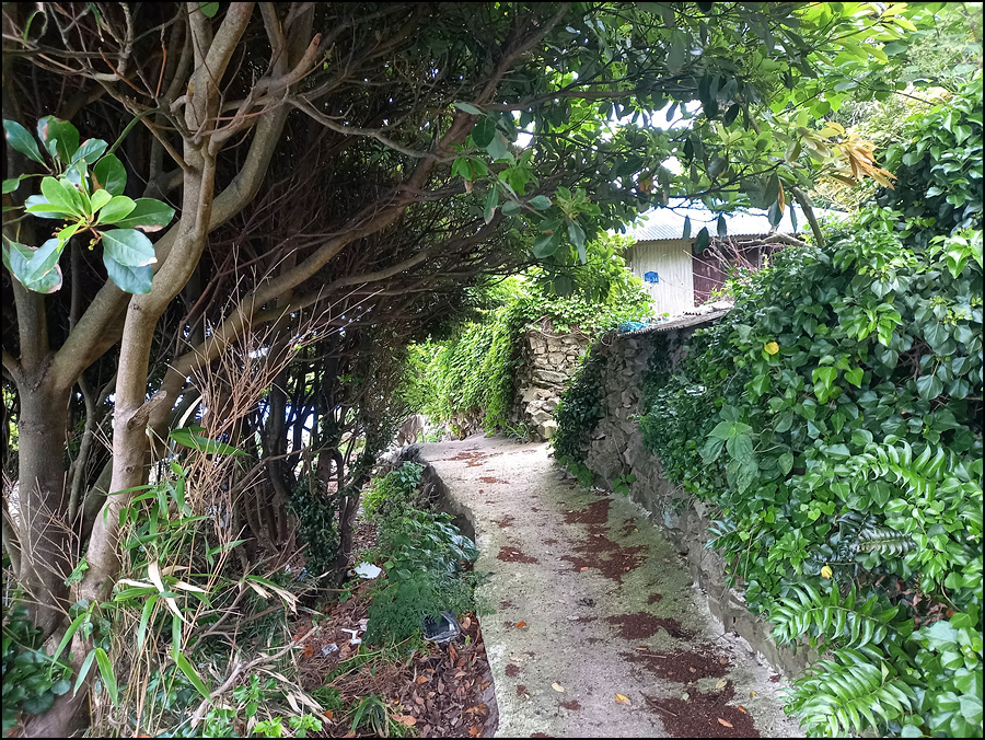 마을로 드는 길은 돌담이 미로처럼 이어져 있다.