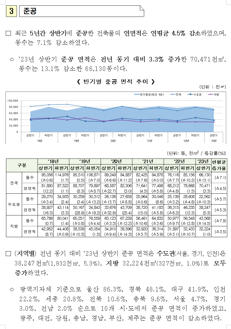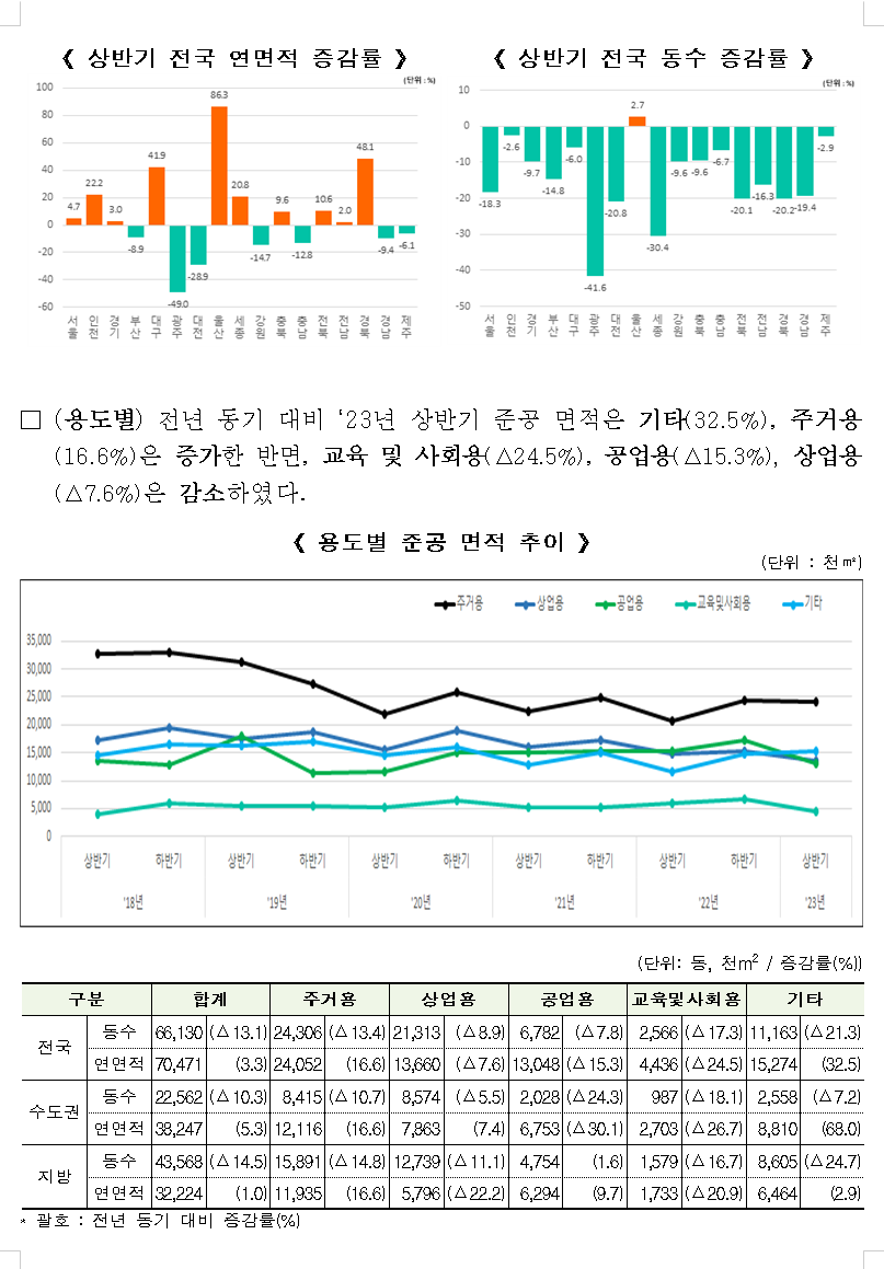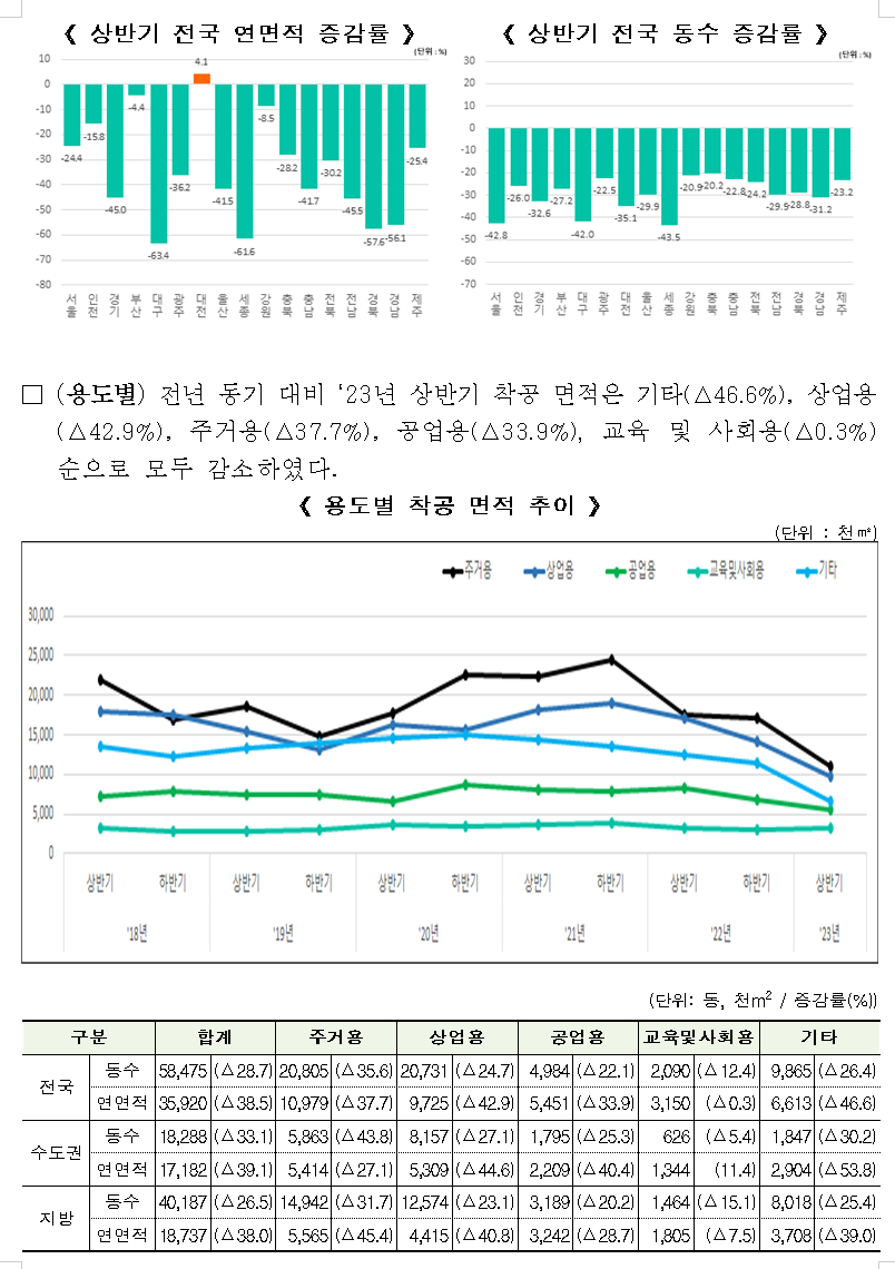 ㅇ 2023년 상반기 준공 면적은