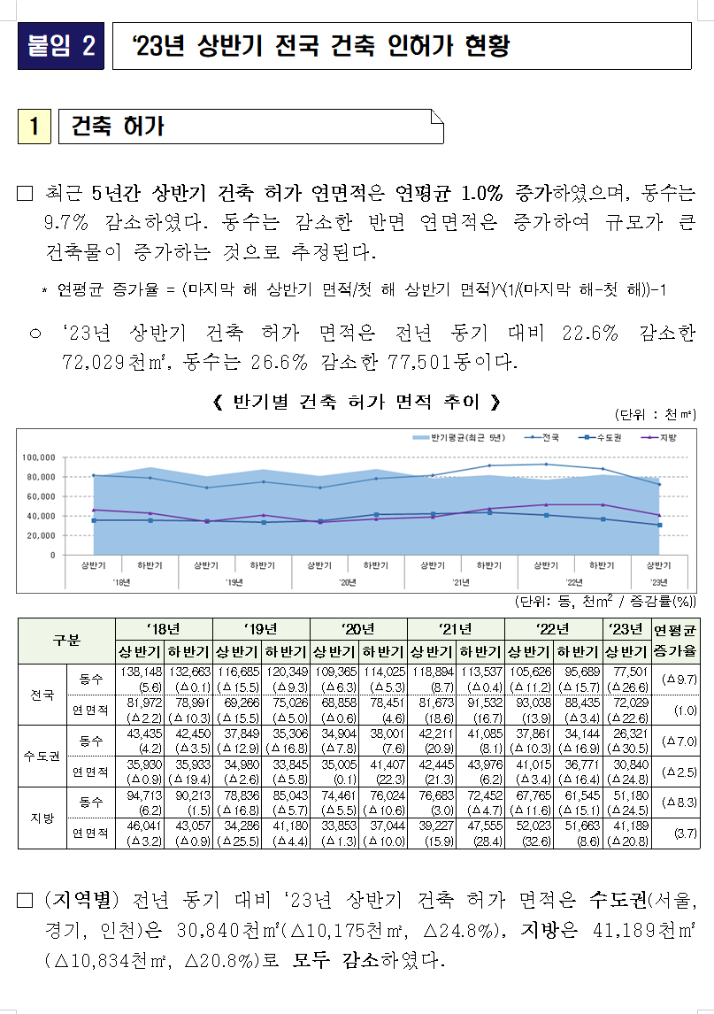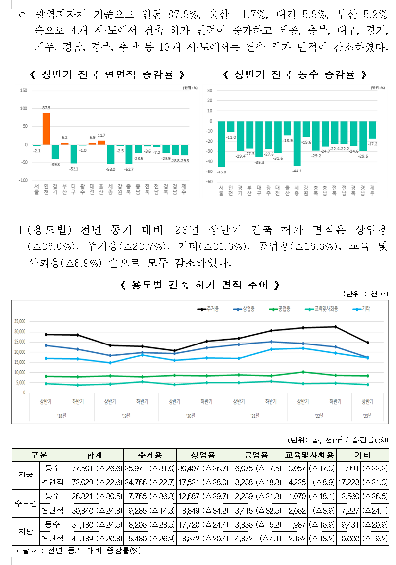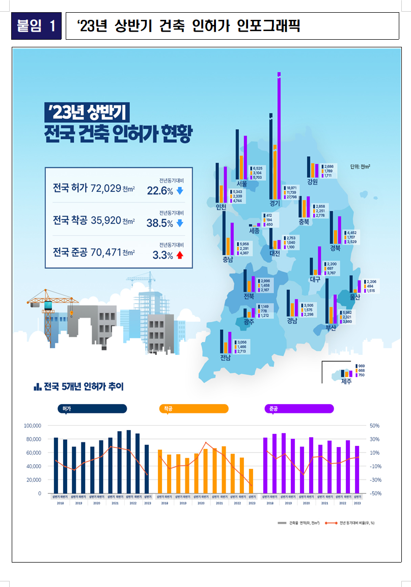 2023년 상반기 전국 건축 인허가 현황을
