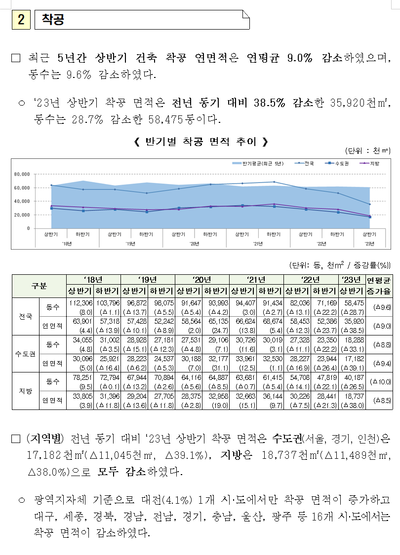 ㅇ 2023년 상반기 착공 면적은