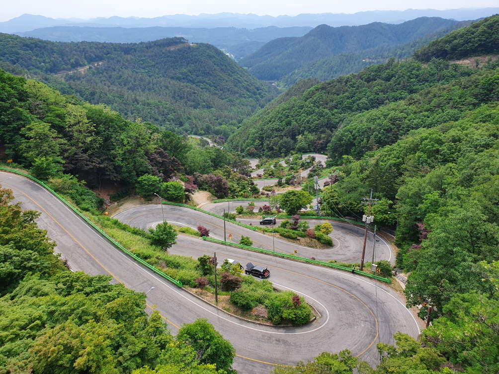 황금빛 낙조 사이로 펼쳐지는 구불구불 열두 고개는 한 폭의 그림처럼 아름답다.