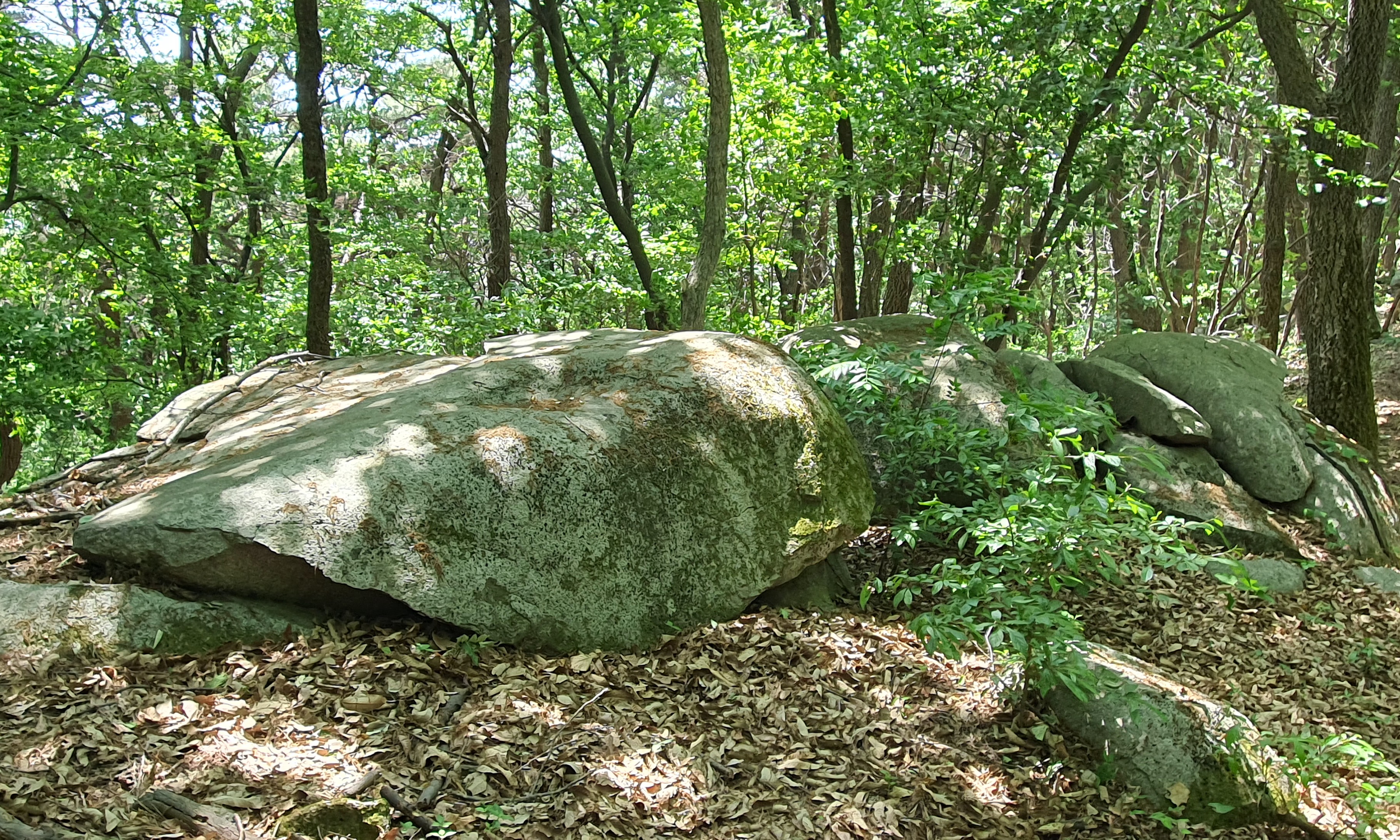 ▲전형적인 육산인 오늘 산행에서 보기 힘든 바위로 점심을 해결하기 좋은 장소다...