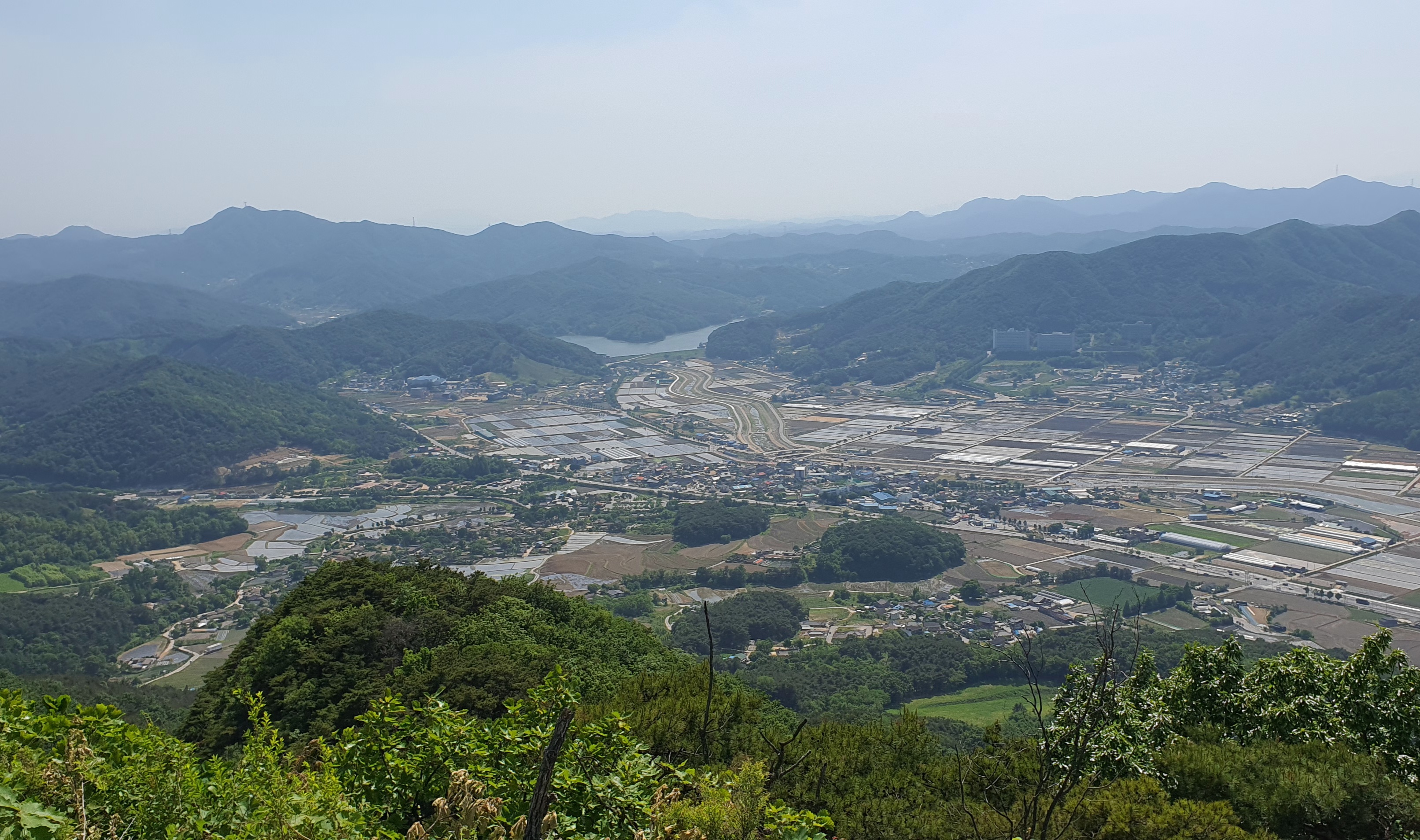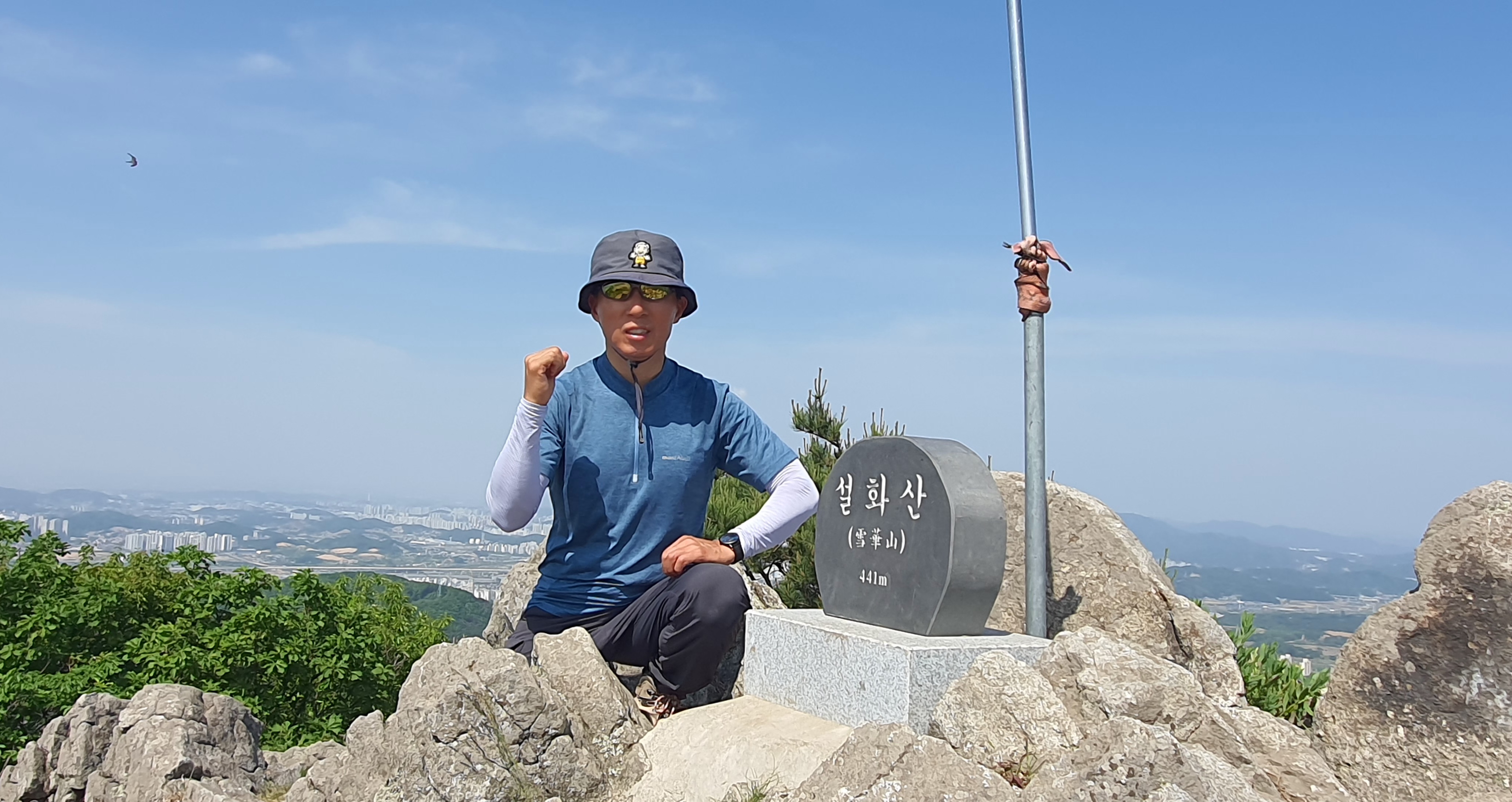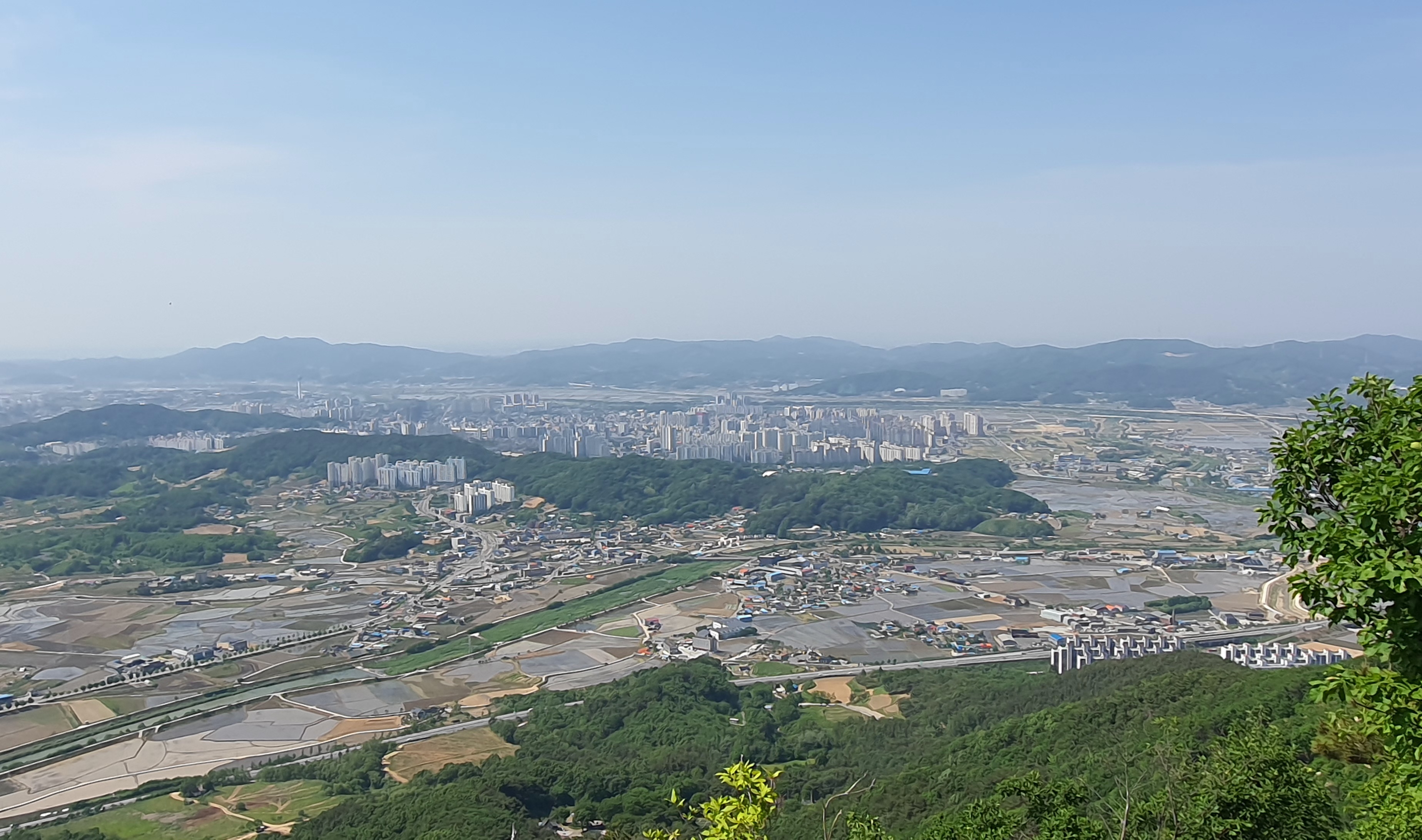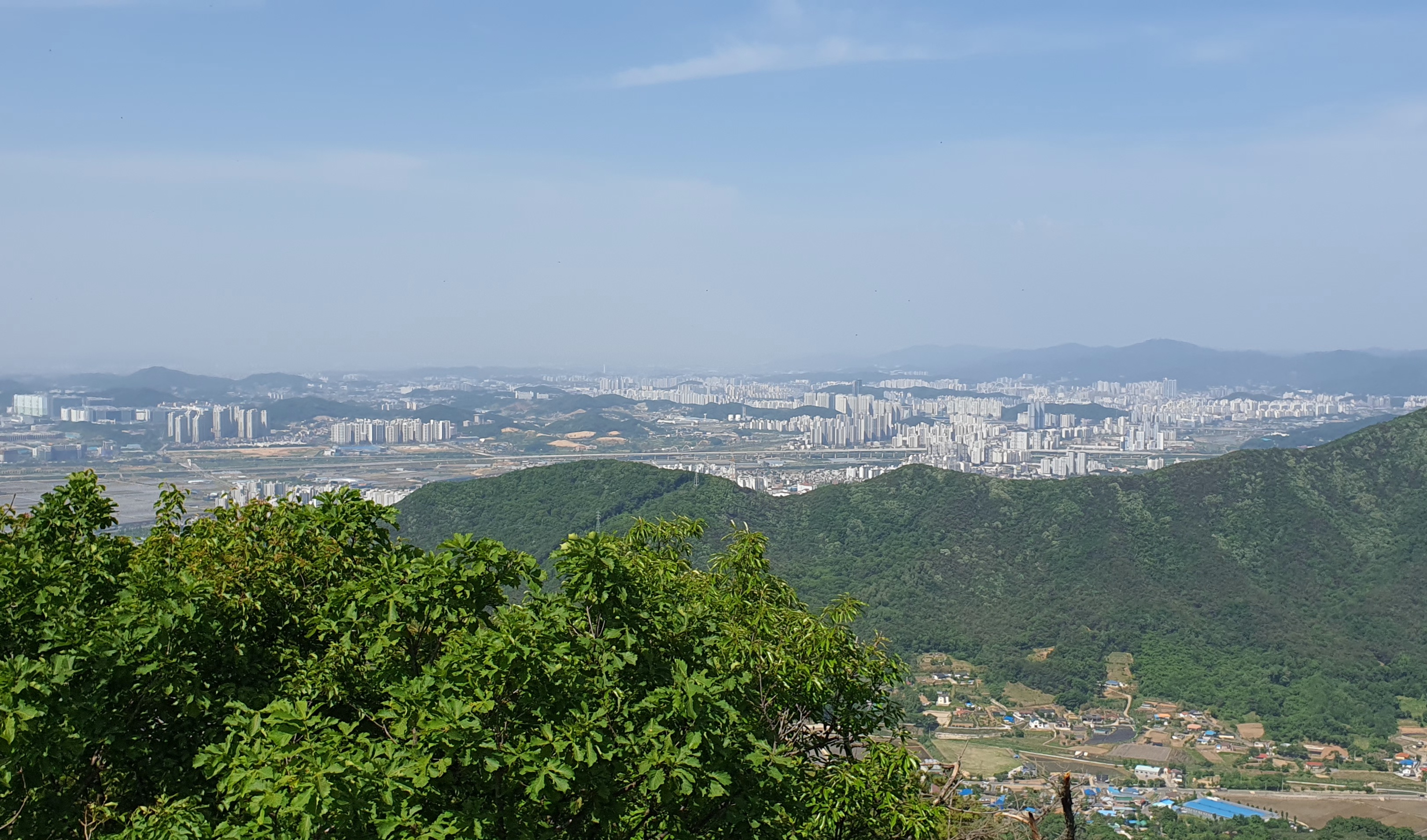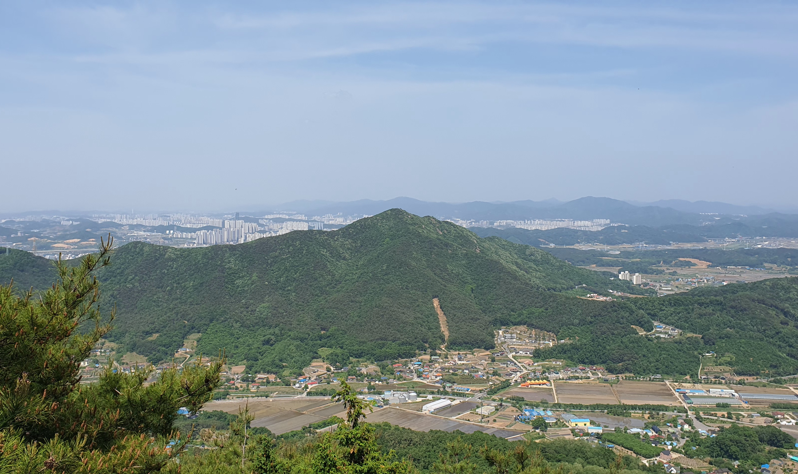설화산 정상에 오르면 천안시와 아산시의 시가지가 멋지게 펼쳐보이고 망경산에서 지나온 능선이 주마등처럼 다가온다.
