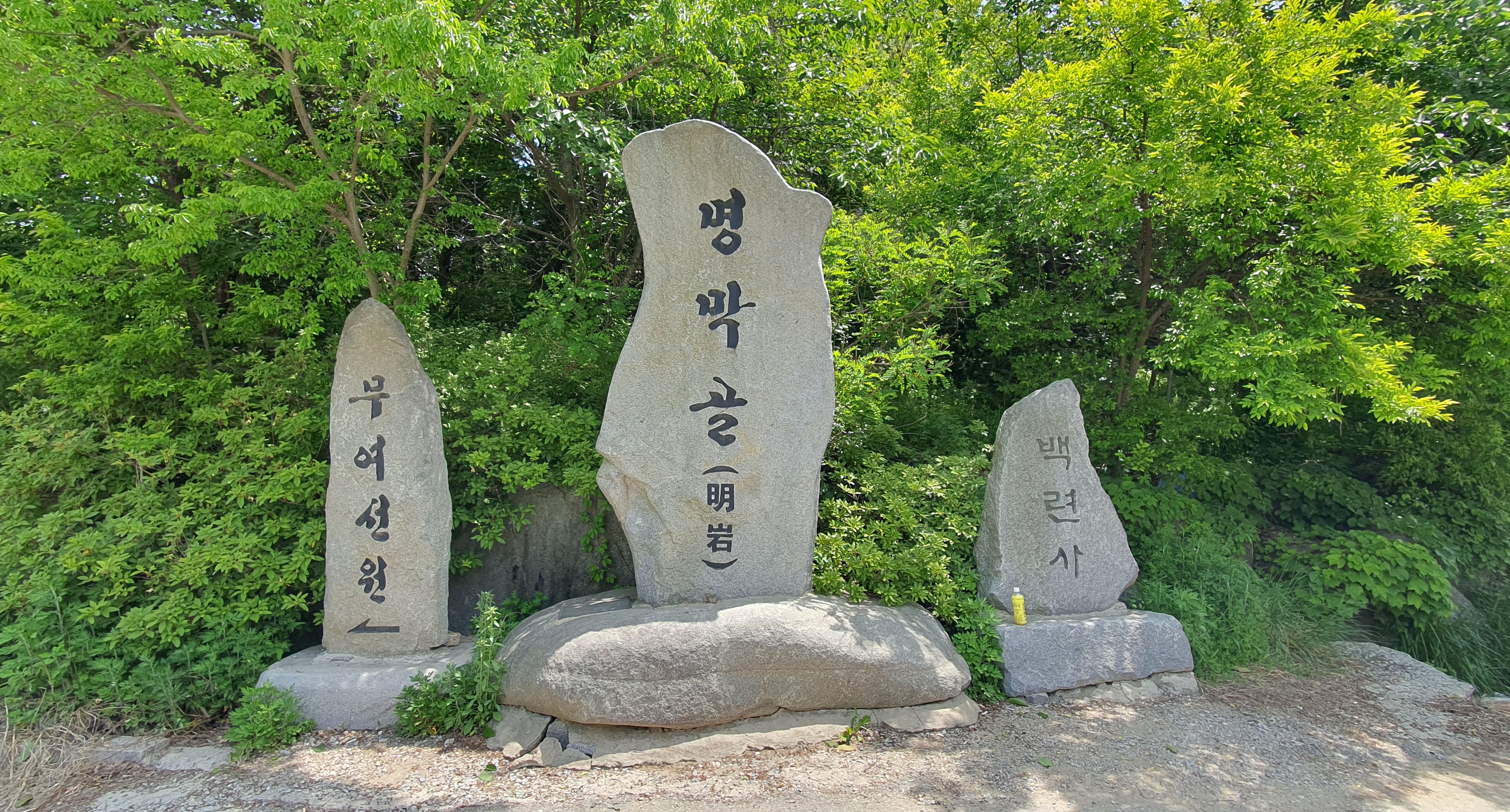▲오늘 산행의 들머리인 넋티고개에 명막골이란 표지석이 세워져 있다.