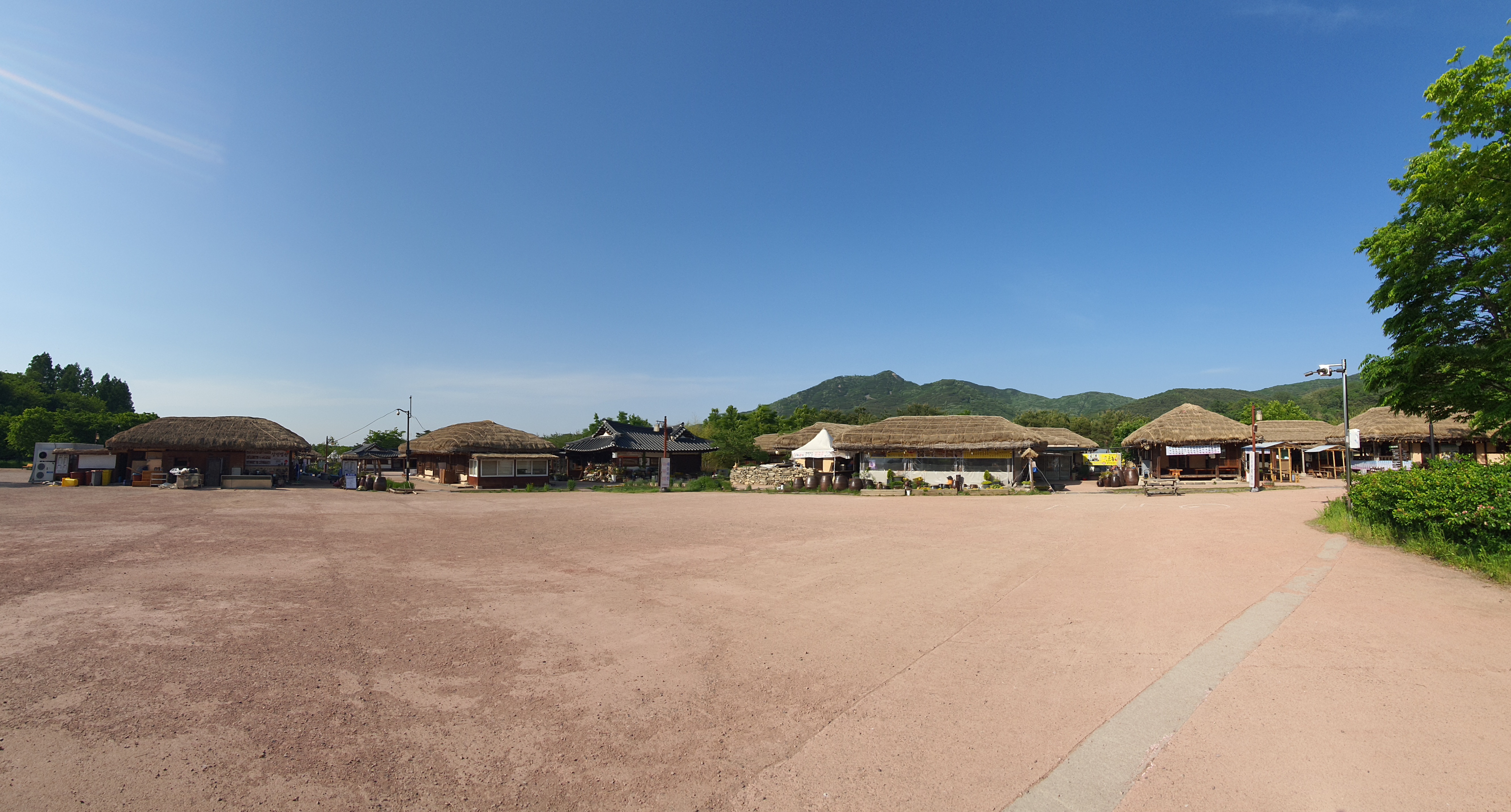 탁조골로 하산하여 둘러볼 초가지붕으로 이루어진 외암민속마을이 발아래에 내려다 보인다.