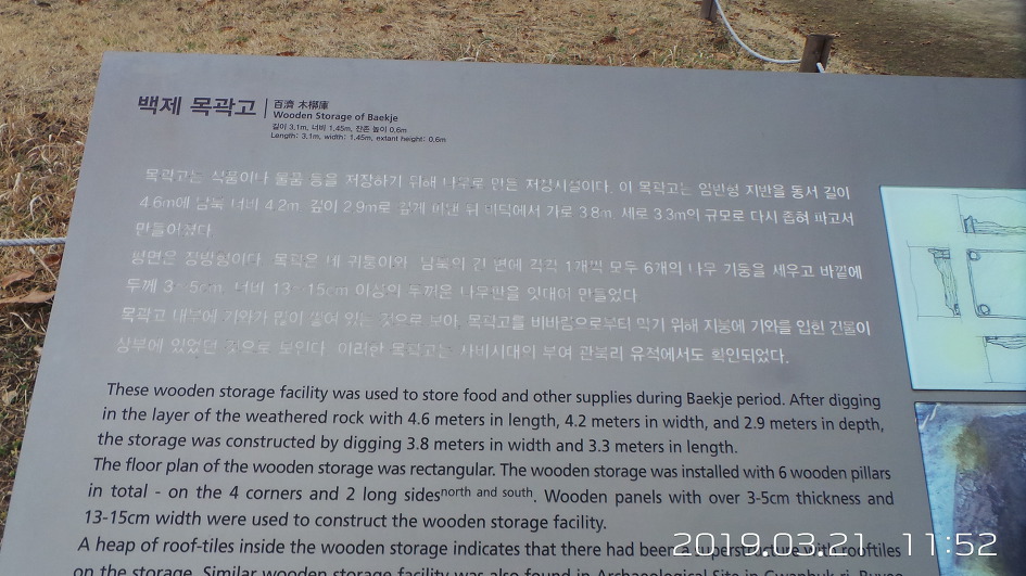 백제 목곽고(木槨庫) 터. 목곽고는 식품이나 물품을 저장하는 목재로 만든 저장시설.