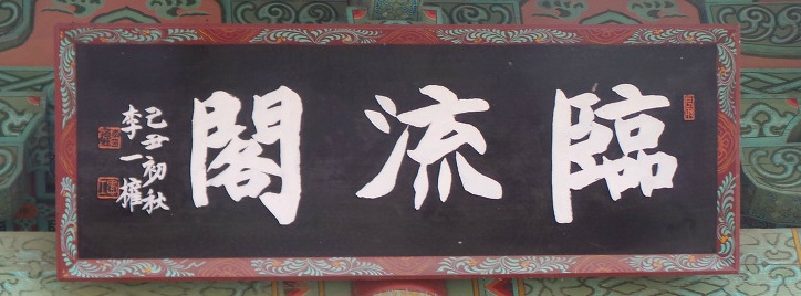 임류각((臨流閣) 편액엔 을축초추 이일권. 우공 이일권은 서각가로도, 시인으로도 두각을 나타내고 있다.