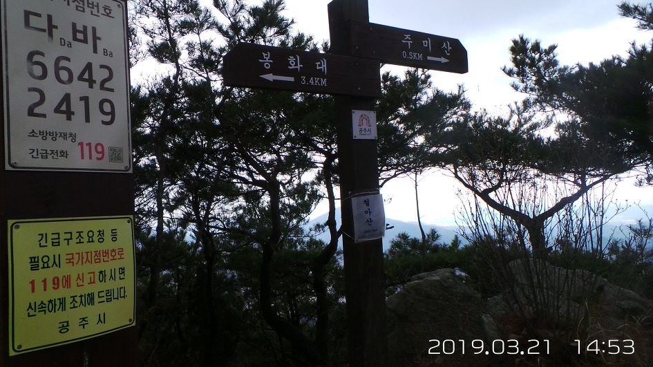 다음 기회에 두리봉~새재~봉황산을 거친 뒤 송산리고분군과 무열왕릉을 답사하고 웅진백제역사박물관과 국립공주박물관을 견학하면 원점회귀가 될 것.