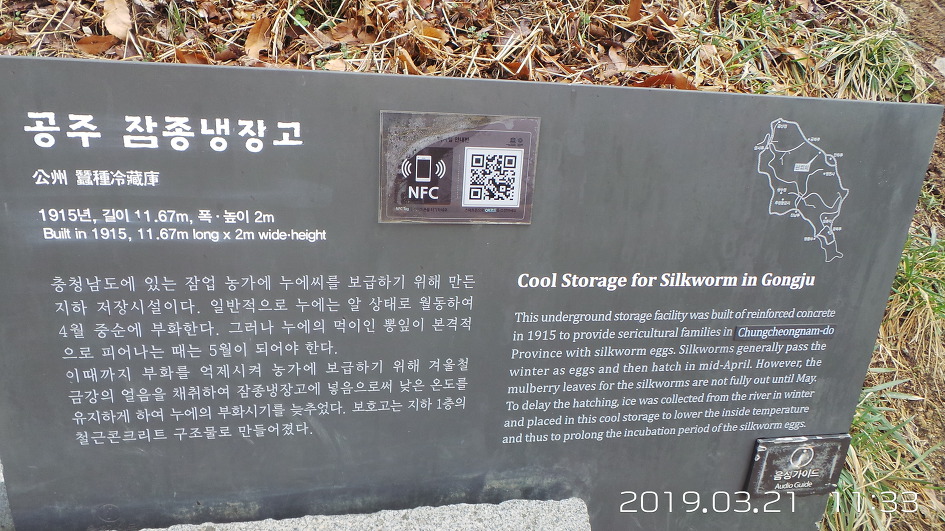 누에의 저온 창고시설인 잠종 냉장고 안내판.