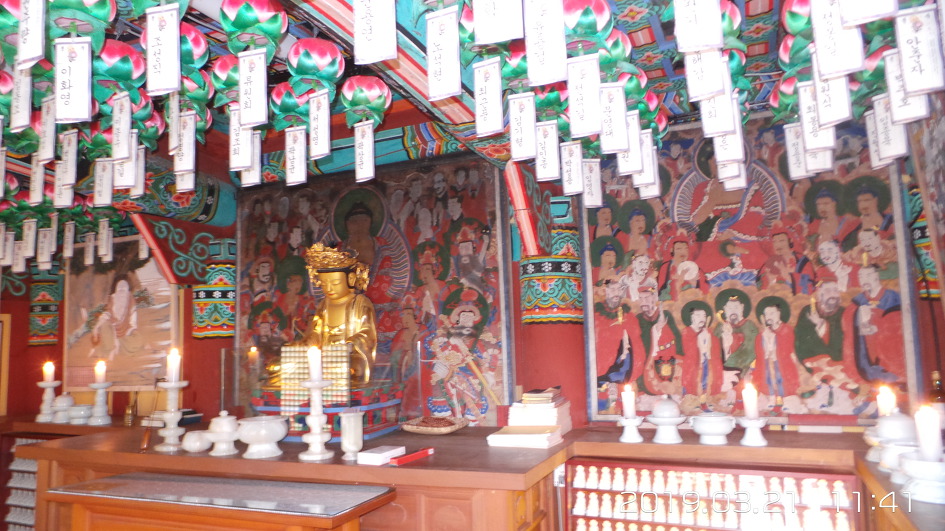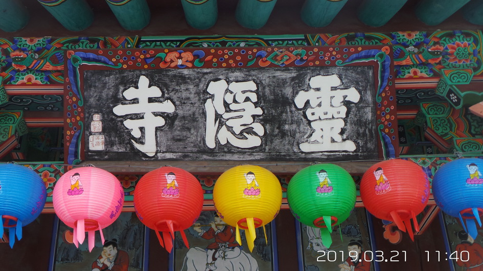 靈隱寺 원통전/ 목조 관음보살 美笑는/ 근심걱정 잊게 하는/ 慈悲의 法門이라네