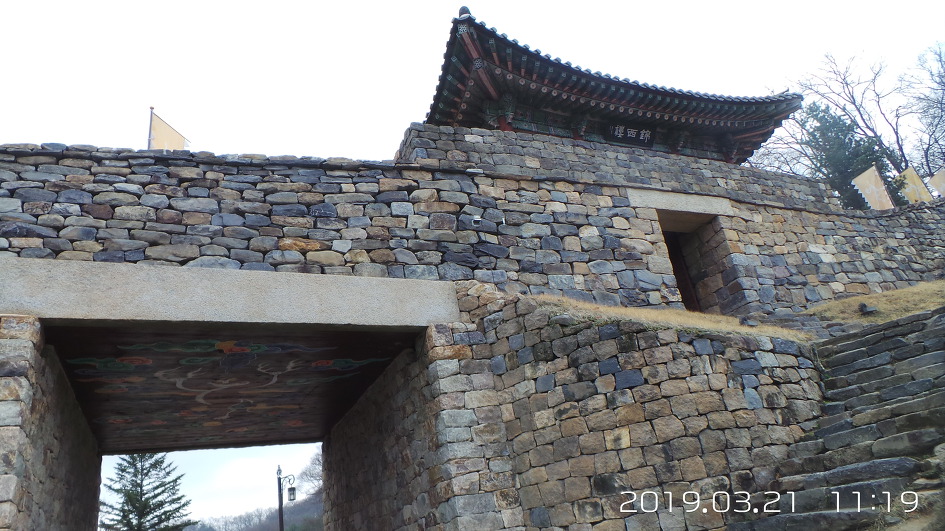 우측 발아래 성곽을 따라 문루도 확인된다.