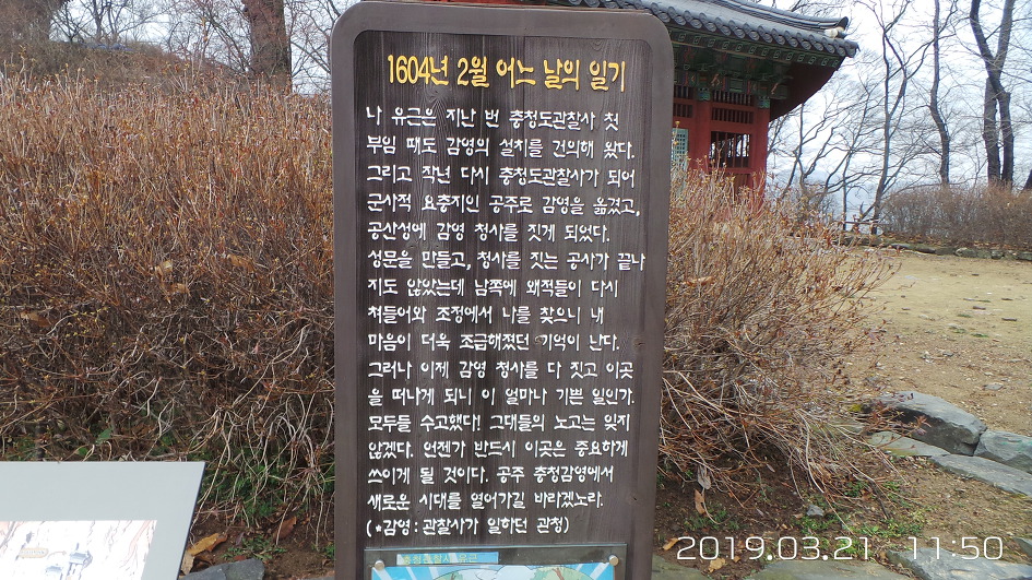 南과 北 連結하는/ 通路 拱北樓/ 도도히 흐르는 錦江물/ 쓰다듬고 서있다네 <우공 이일권 님의 '공산성 14시' 중에서...>