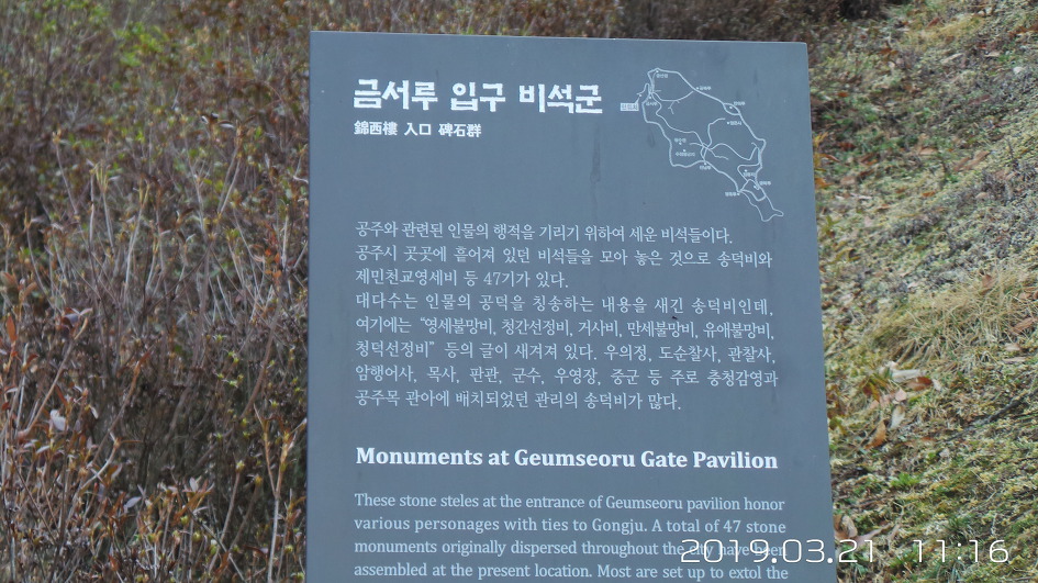 공산성을 들어서자 입구에선 수십기의 비석들이 보기좋게 도열해 있다.