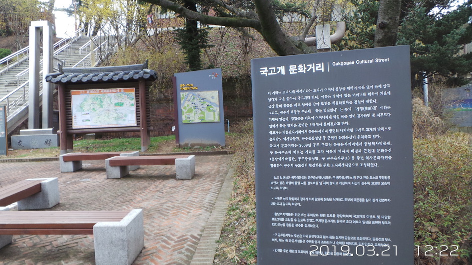 국고개 문화거리는 효자 이복이 어머니 봉양을 위해서 국을 얻어 품에 안고 고개를 넘다가 국을 쏟아서 국고개라 불리우는 곳.