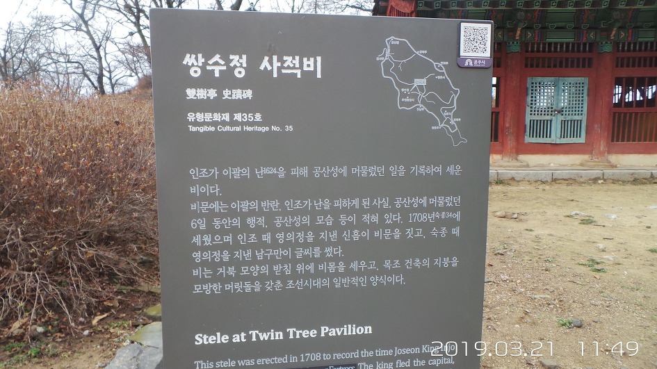 조선 인조 2년(1624)에 왕이 이괄의 난을 피해 공주성에 머물렀던 장소에 사실을 기록하여 숙종 34년(1708)에 석비를 건립하였다.
