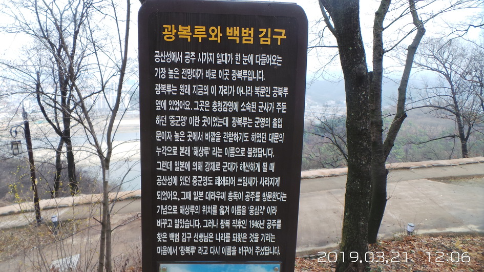 일행들은 옥룡동 복지센터에서 월성산으로 바로 올라갔고, 우리들은 공산성을 기점으로 삼았다.