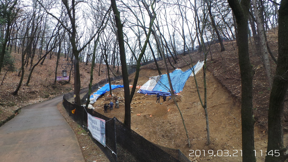 정상부로 올라가는 길목에는 아직까지 발굴작업이 이루어지고 있다.