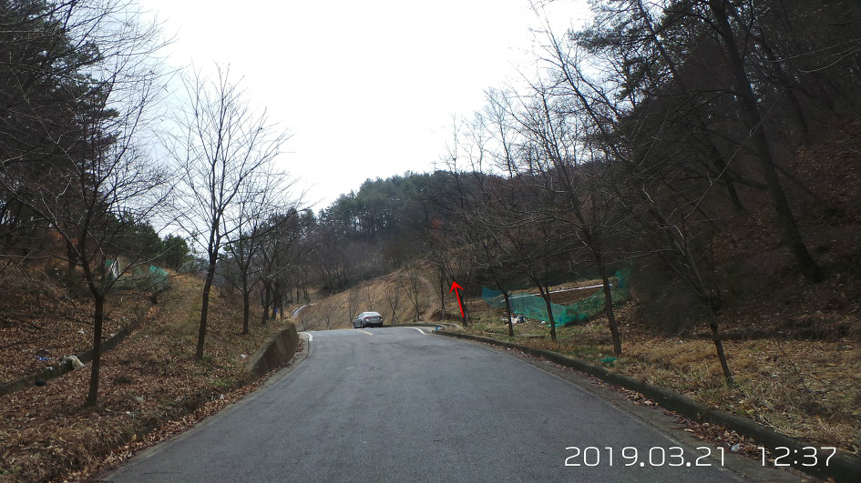 승용차가 있는 고갯마루에서 우측 산길로 오르면...