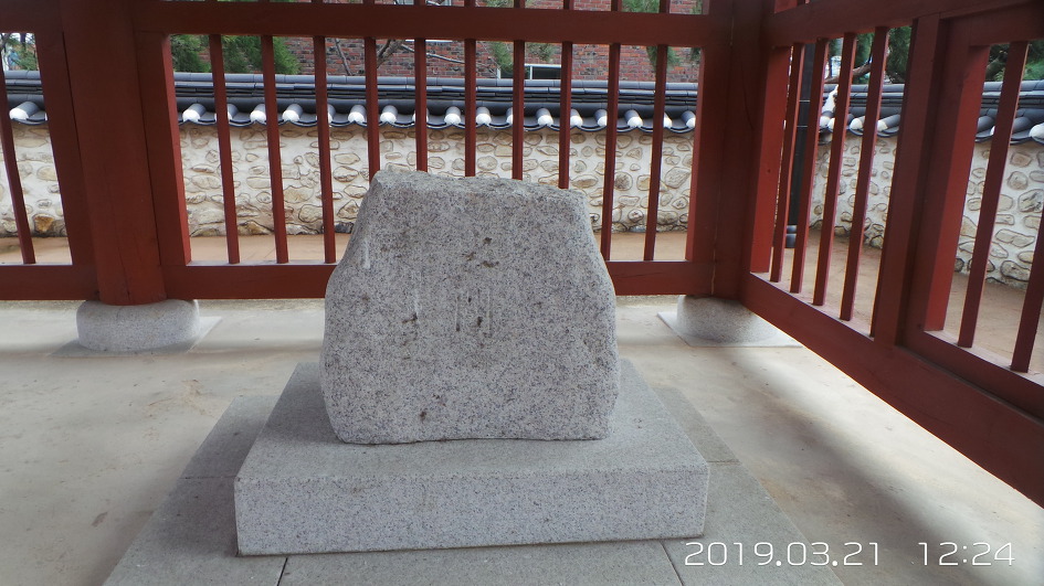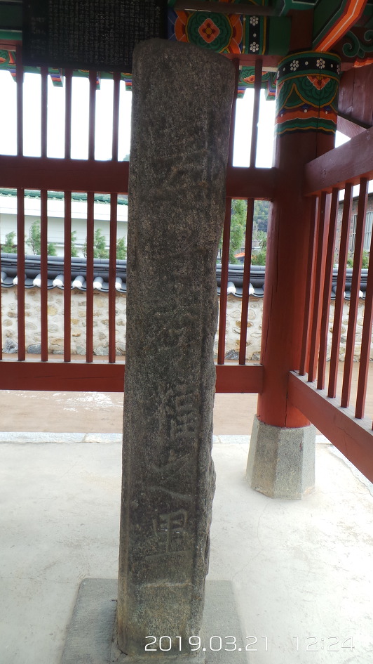 1973년에 세워졌고, 대통령 박정희라는 글자는 정으로 쪼여져 훼손되어 있다.