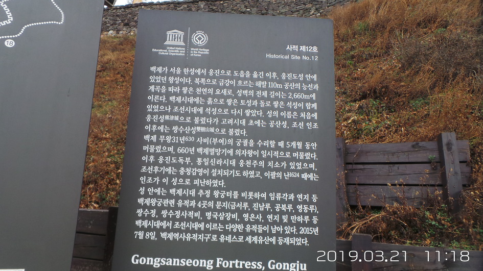 사적 제12호. 공산성은 '백제역사유적지구'로 유네스코 세계유산에 등재되었다.