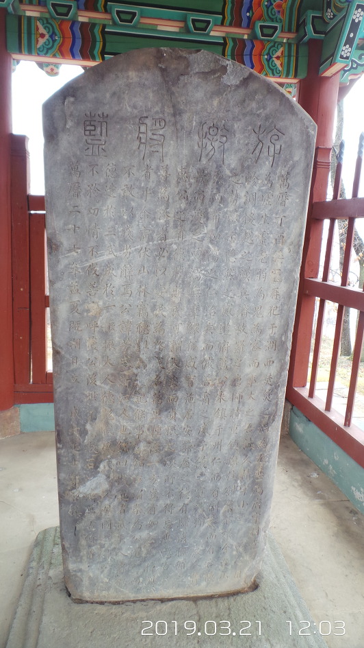 비문은 우의정 신흠이 찬하고 중추부사 남구만이 서(書)하였으며, 영의정 최석정이 두전하였는데 후에 송시열의 음기(陰記)가 있다.<자료인용>