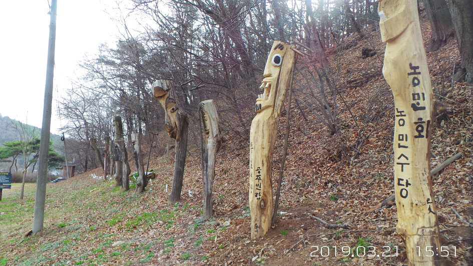 두리봉(일락산 271.9m)으로 계속 진행할려면 장승 왼쪽으로 다시 산길을 올라야 하지만 우리는 여기까지다.