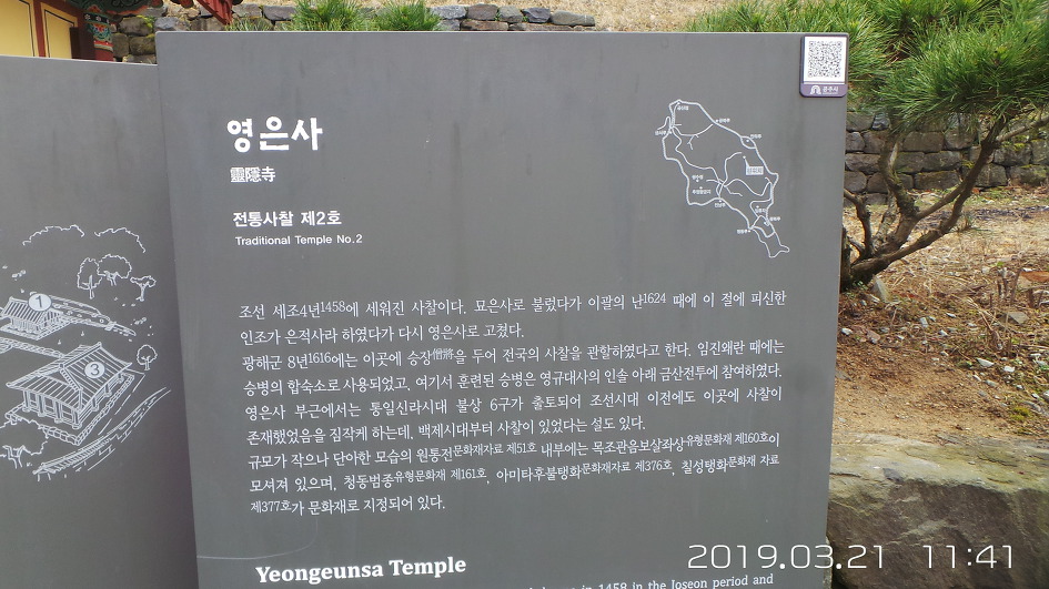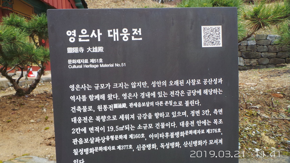 올라오면 영은사(靈隱寺, 충남 문화재자료 제 51호).