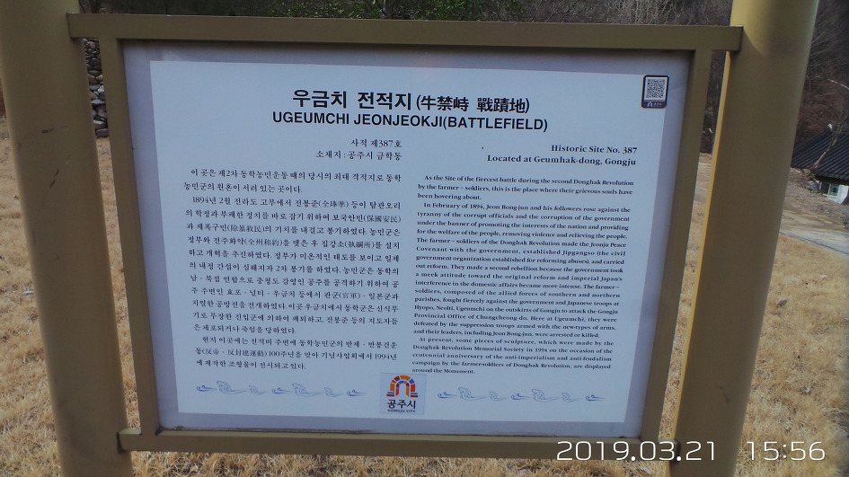 <클릭하면 원본 크기> 우금치 전적지 안내판
