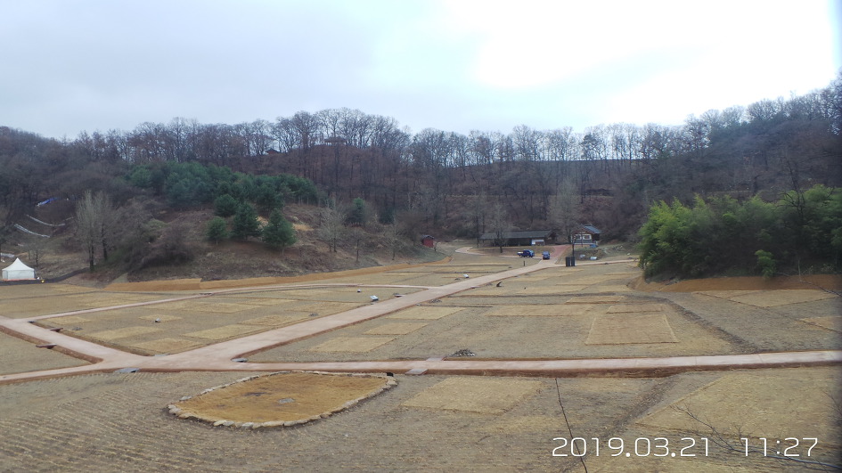陽地 바른 土城 위/ 百濟의 자취 남았고/ 벚나무 볼그레/ 꽃망울 눈을 터뜨리네